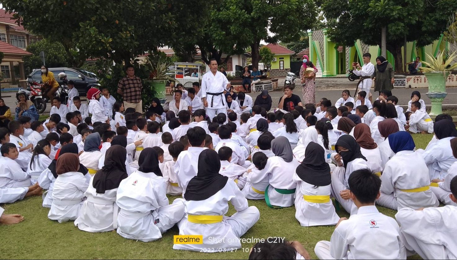Lampung Utara – Kushin Ryu-M Karate-do Indonesia (KKI) Kabupaten Lampung Utara (Lampura) menggelar latihan bersama seluruh ranting. Latihan bersama ini dilaksanakan di Halaman Upacara Kantor Pemerintah Kabupaten (Pemkab) Lampura. Minggu (27/3/2022)