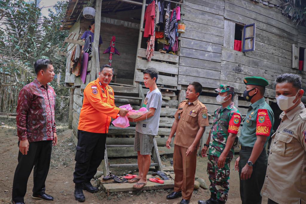 Pada peninjauan pasca banjir di desa Kertajaya secara Simbolis diserahkan Bantuan Gubernur Sumsel sebanyak 304 Paket, 100 Paket dari Dinsos Muba, dan 25 Paket dari BPBD Muba.
