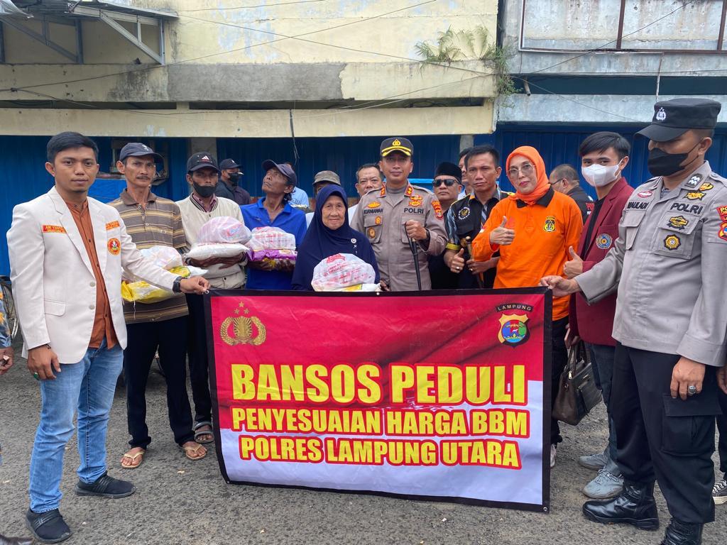 Reviewindonesia.id | Lampung Utara – Kepala Kepolisian Resor (Kapolres) Lampung Utara (Lampura), AKBP Kurniawan Ismail, S.H., S.I.K., M. I.K. memimpin langsung pemberian sembako kepada warga kurang mampu yang terdampak dari penyesuaian harga BBM, Kamis (8/9).