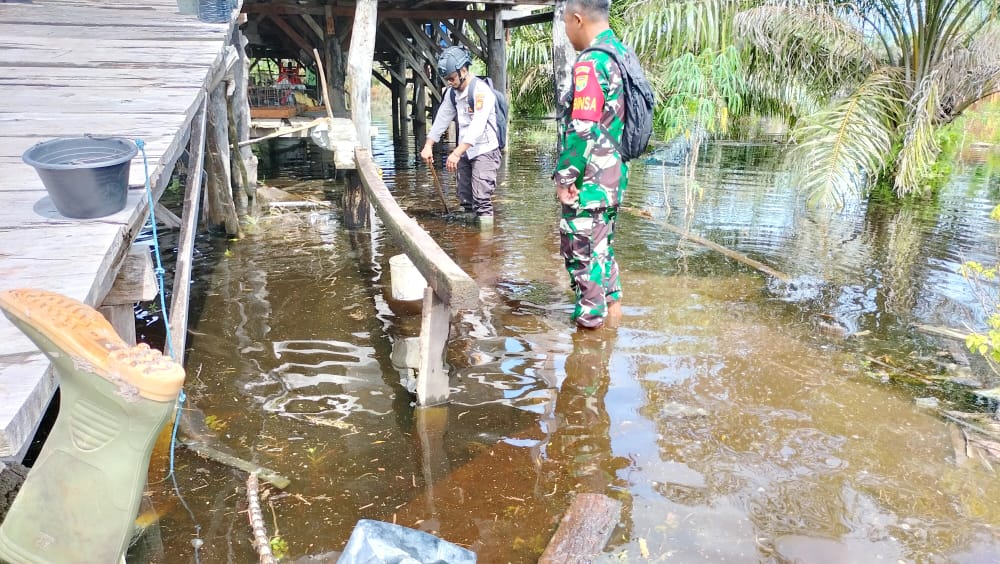 MUBA,reviewindonesia.id – Guna meninjau wilayah Rawan Banjir, Bhabinkamtibmas Polsek Sanga Desa Resor Musi Banyuasin AIPDA Herman Andrayadi bersama Babinsa Koramil 401-02/Babat Toman berjibaku, Rabu (23/11/2022).