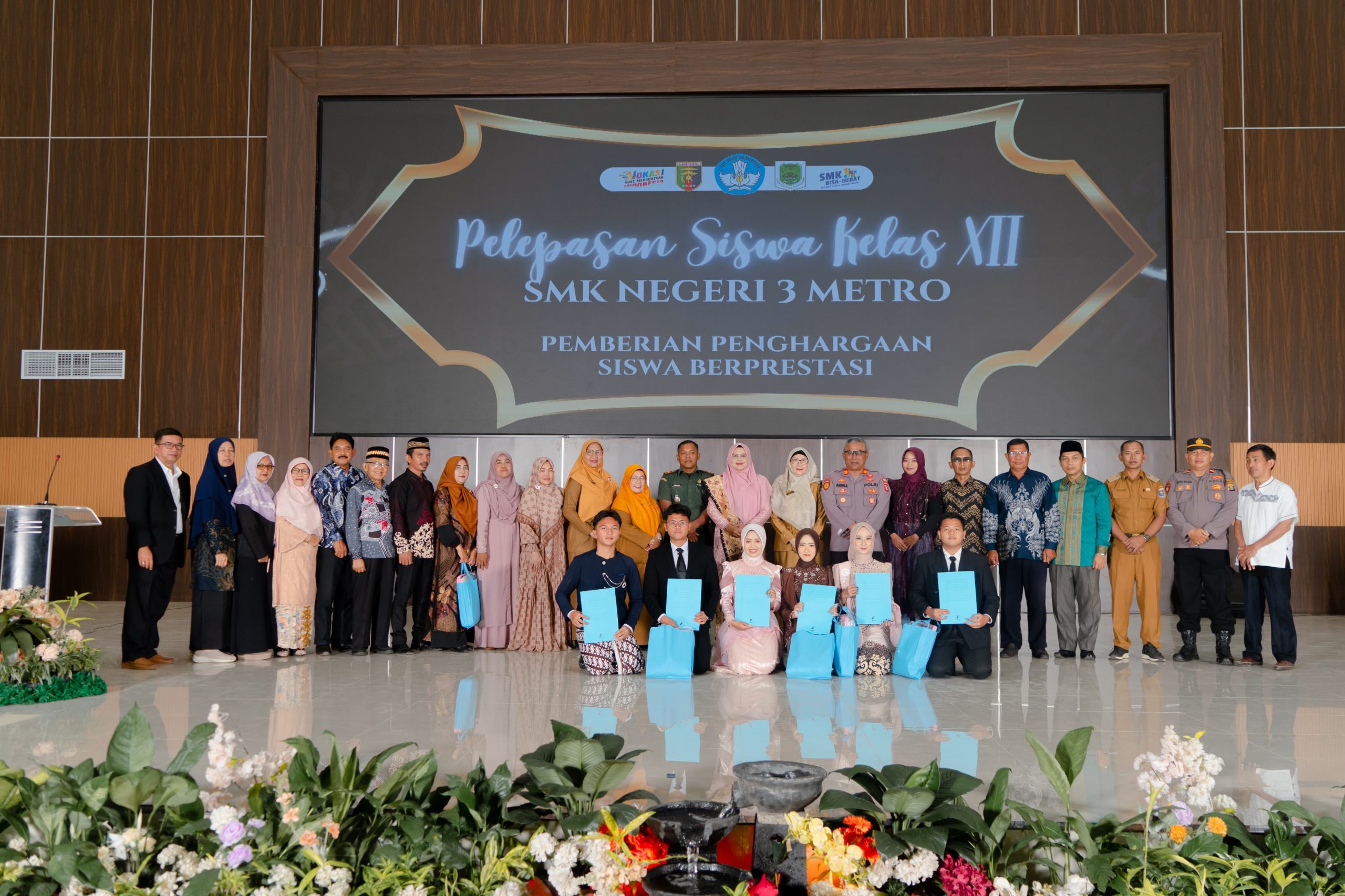 Pelepasan Siswa Kelas XII SMK Negeri 3 Metro Angkatan ke- 22 TP.2024/2025 dan Pemberian Penghargaan Siswa Berprestasi, yang berlangsung di Gedung Akademik Center (GAC) Kampus II IAIN Metro,Selasa (06/05/2025).