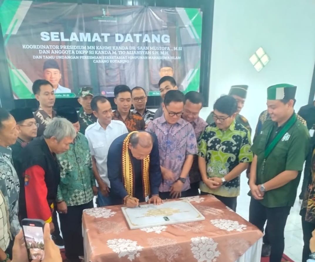 Lampung Utara, Review Indonesia – Koordinator Presidium Majelis Nasional KAHMI, Saan Mustopa meresmikan gedung sekretariat Himpunan Mahasiswa Islam (HMI) Cabang Kotabumi Lampung Utara (Lampura). Sabtu (10/5).
