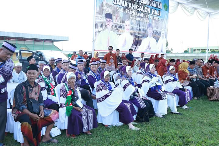 Lampung Utara, Review Indonesia — Pemerintah Kabupaten (Pemkab) Lampung Utara(Lampura) secara resmi melepas keberangkatan jemaah haji Kloter 2 sebanyak 47 orang tahun 2025 dalam sebuah acara yang berlangsung khidmat dan penuh haru di Lapangan Stadion Sukung Kotabumi.