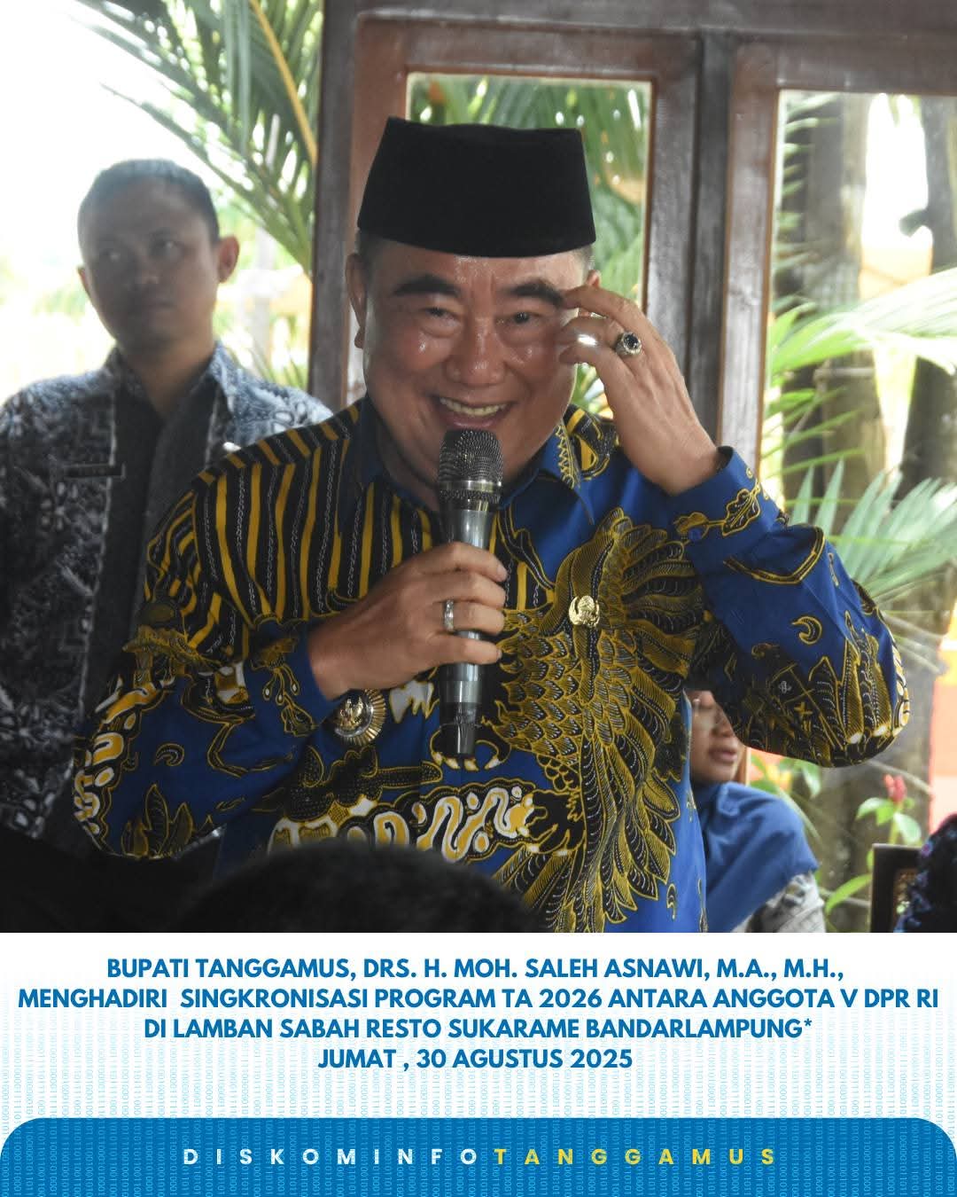 Tanggamus -Bupati Tanggamus Drs. H. Moh. Saleh Asnawi, M.A., M.H., mengikuti kegiatan Sinkronisasi Program Percepatan Penanganan Infrastuktur Daerah TA 2026 (Jum’at, 29/08/2025).