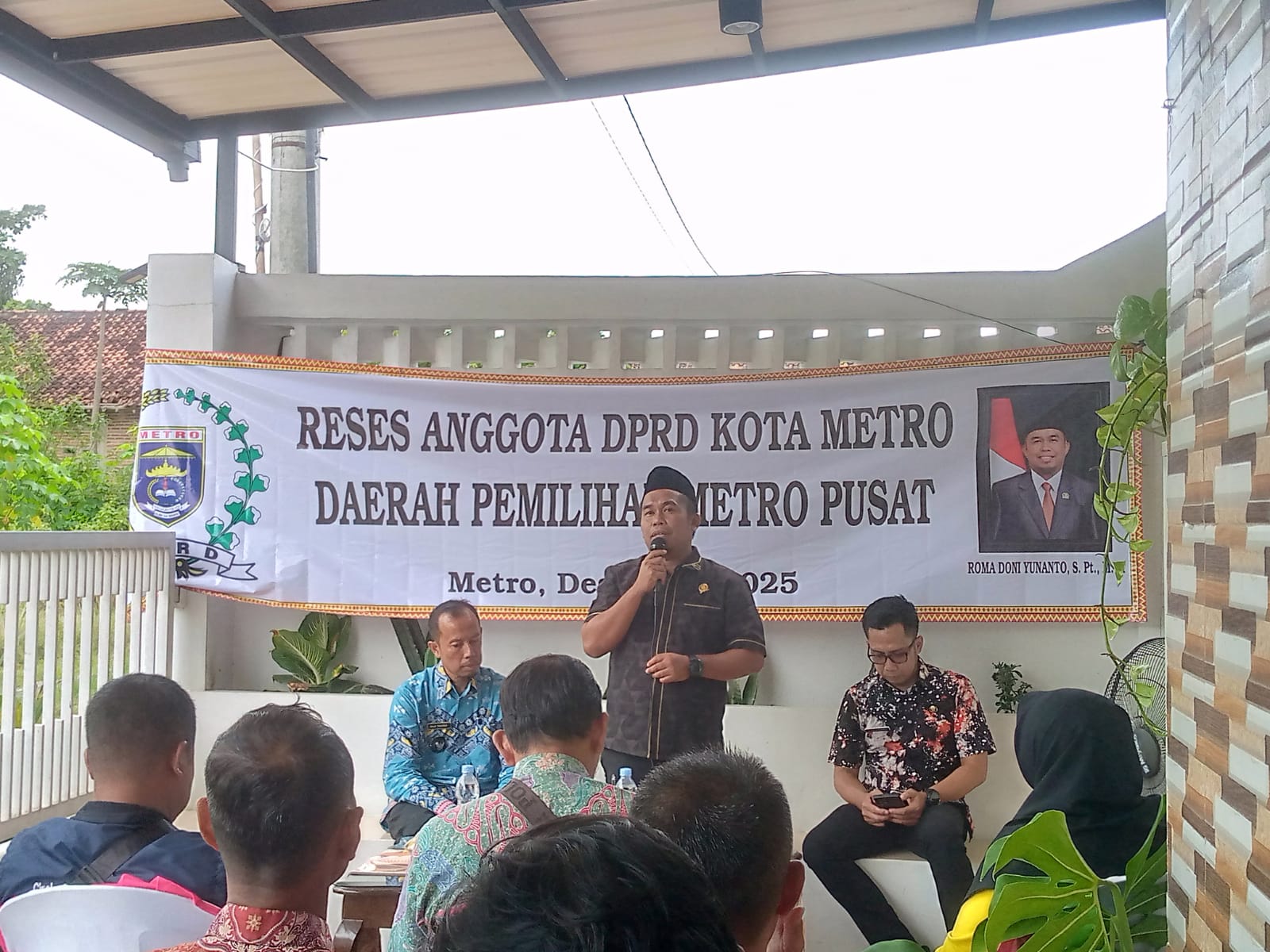 Kegiatan reses berlangsung di Kediaman Anggota DPRD Kota Metro Roma Doni Yunanto jalan Cempaka 4 RT 033/RW 011 Yosomulyo, Metro Pusat, Kota Metro, Jum’at (12/12/2025).