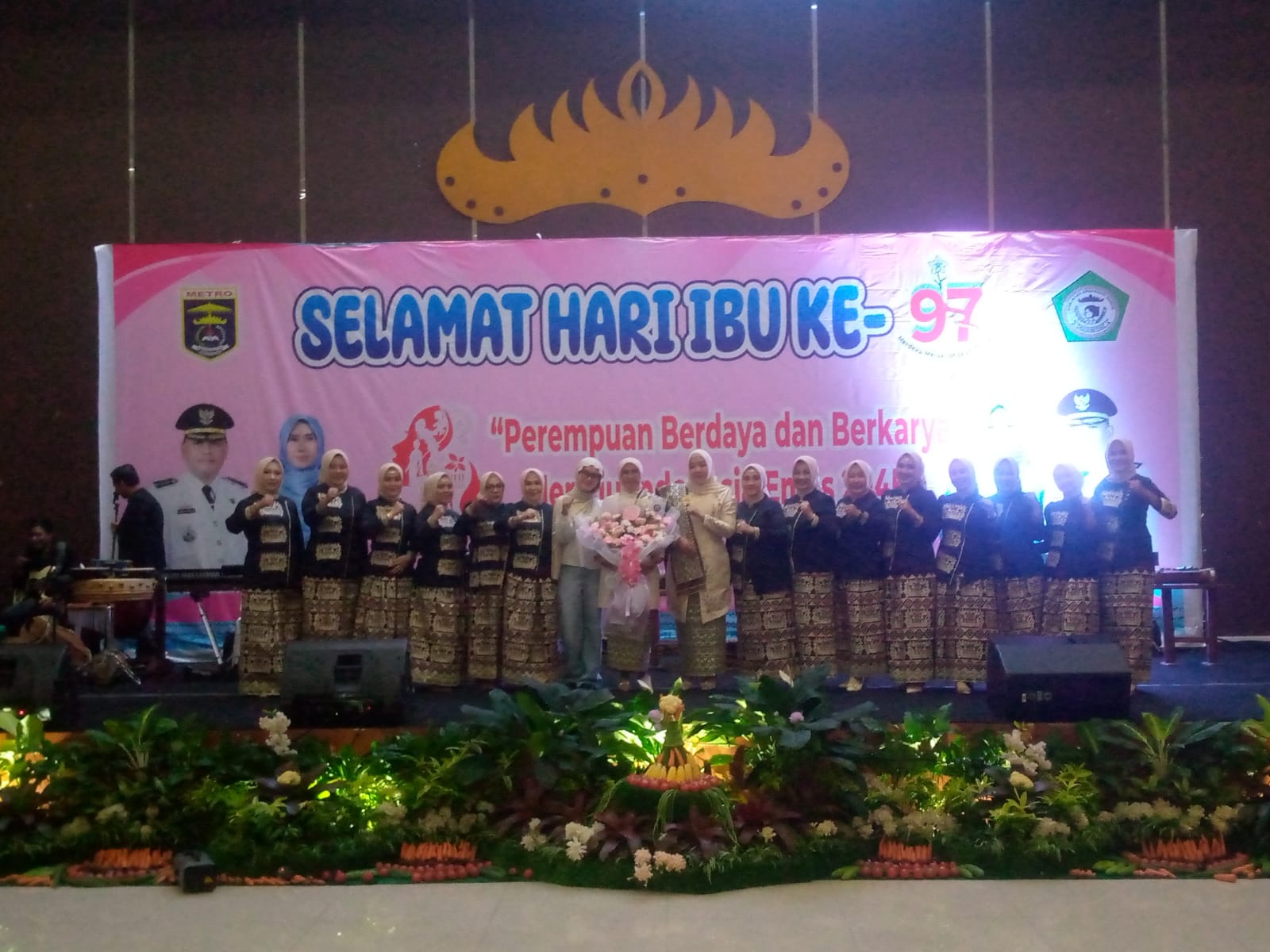 Pemerintah Kota Metro Melalui Dinas P3AP2KB bersama GOW berkolaborasi Menggelar acara Puncak Peringatan Hari Ibu (PHI) ke-97 tingkat Kota Metro dengan Tema “Perempuan Berdaya dan Berkarya Menuju Indonesia Emas 2045, yang berjalan lancar dan khidmat yang berlangsung di Aula Gedung Sessat Agung Bumi Sai Wawai, Selasa (23/12/2025).