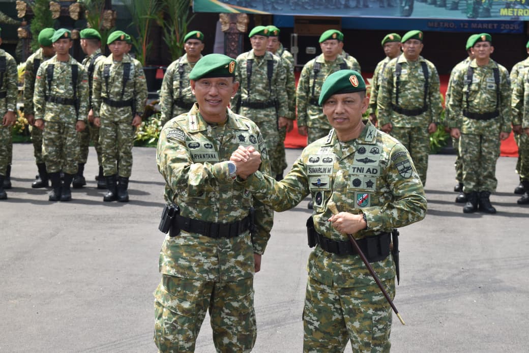 Lampung – Korem 043/Garuda Hitam (Gatam) menggelar tradisi apel penyerahan pasukan dari pejabat lama kepada pejabat baru Komandan Korem 043/Gatam, Jumat (13/03/2026). Kegiatan ini merupakan bagian dari rangkaian serah terima jabatan Danrem 043/Gatam yang sebelumnya telah dilaksanakan di Aula Pamungkas Korem 043/Gatam, Kota Metro, Kamis (12/03/2026).